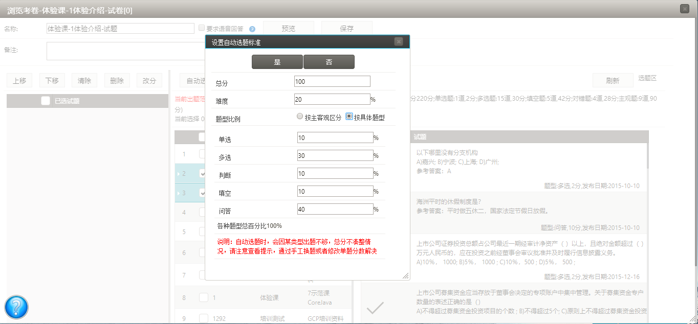 靈活的組卷,可以隨機出題,也可以導入指定的試卷